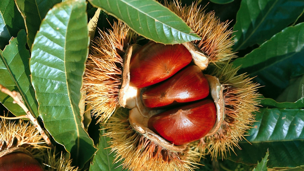 Европейский каштан, также известный как посевной, вырастает до 35 метров в высоту. Цветет это дерево в начале лета, а опыление происходит благодаря пчелам или ветру. Плоды созревают с октября по ноябрь, и при благоприятных условиях один плод может весить от 17 до 20 грамм. С одного взрослого дерева можно собрать от 100 до 200 кг плодов за сезон.