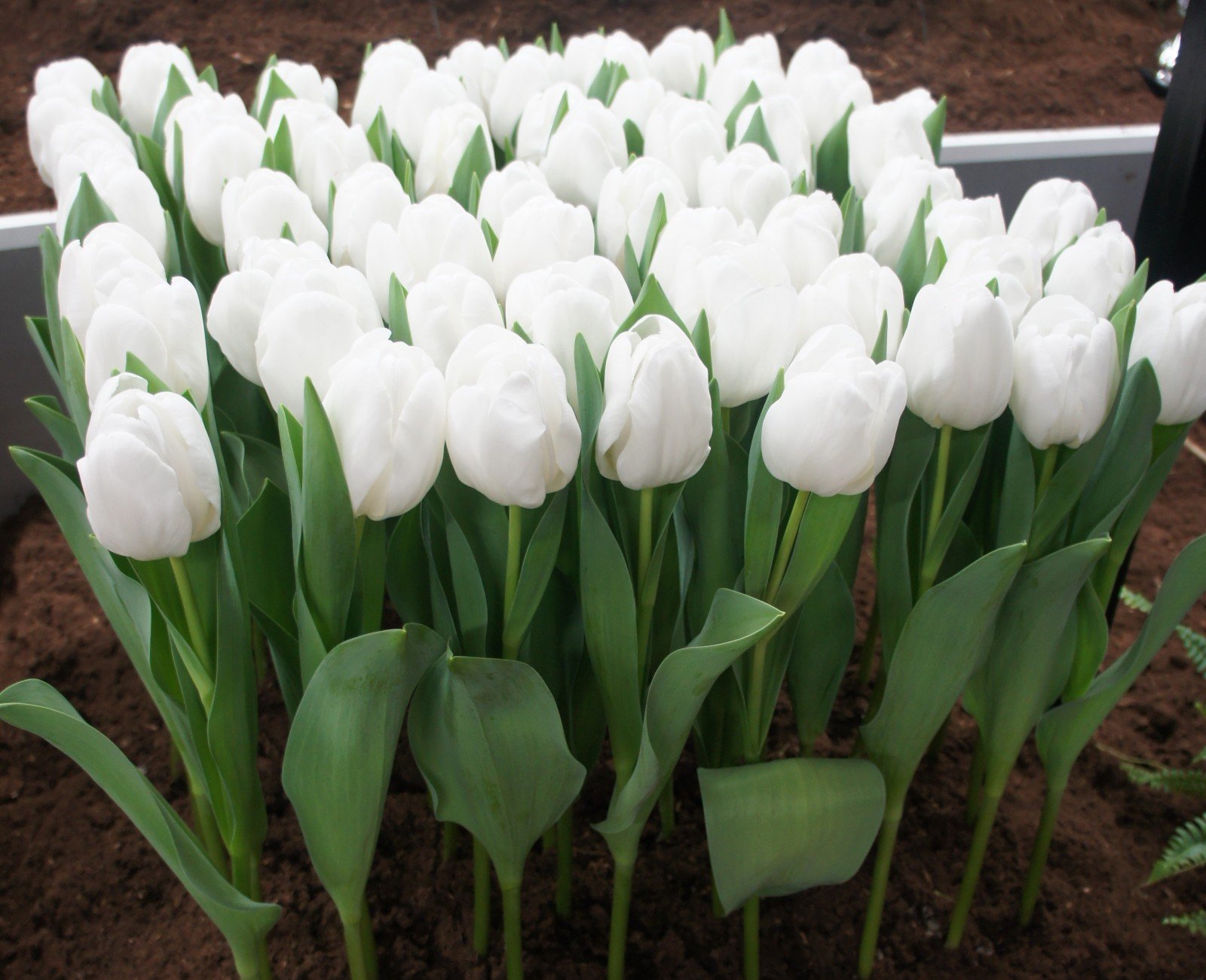 Цветок бокаловидной формы достигает высоты до 7 см. Крупный бутон диаметром 7-10 см раскрывается медленно и редко полностью распускается. Лепестки белого цвета, немахровые, округло-вытянутые, без примесей других оттенков, плотно сгруппированы. Тюльпаны обладают средним ароматом.